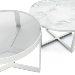 Mesa baja: Estructura metálica (tubo cuadrado de 3/4) y cubierta de mármol volakas